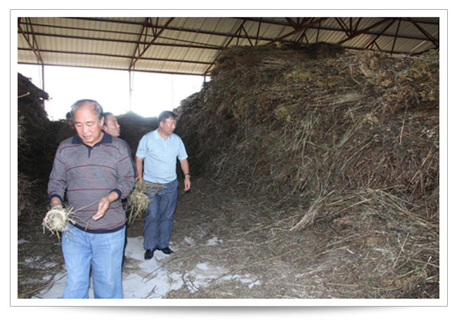 下圖為公司董事長(右一)在晾曬涼棚里查看返魂草藥材